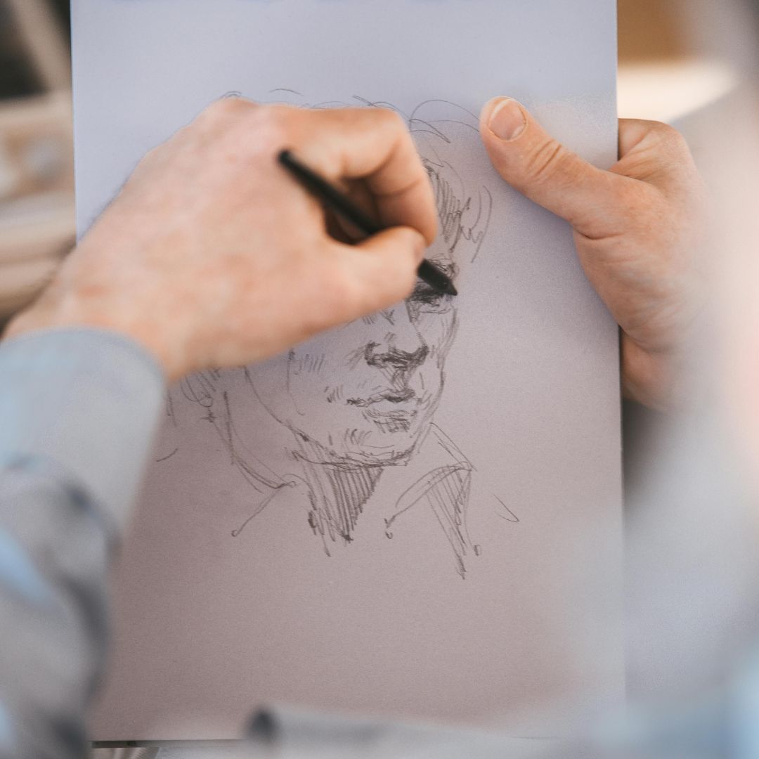 In diesem Kurs werden Sie Schritt für Schritt lernen, wie man ein Gesicht als lockere Bleistiftzeichnung skizziert. Dabei beschäftigen wir uns mit den „Regeln“, um die richtigen Proportionen wiederzugeben und wagen uns nach und nach an jedes einzelne Detail (z. B. Nase, Mund, Augen und Ohren, Haare). Wir lernen, den Ausdruck und die Mimik möglichst vielfältig und treffend zu erfassen sowie dem Gesicht durch kontrastreiches Schraffieren einen räumlichen Eindruck zu geben. Gleichzeitig üben wir, das Gesicht aus verschiedenen Perspektiven zu zeichnen (z. B. von der Seite, von vorne oder schräg von vorne). Dieser Kurs richtet sich an alle, die Lust haben, das schnelle schwungvolle Skizzieren kennenzulernen oder zu verbessern – mit und ohne Vorkenntnisse – und die Freude daran haben, Gesichter schnell und einfach festzuhalten.